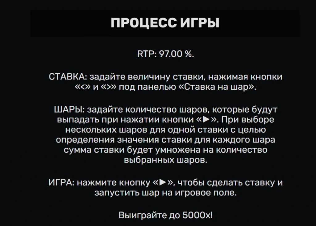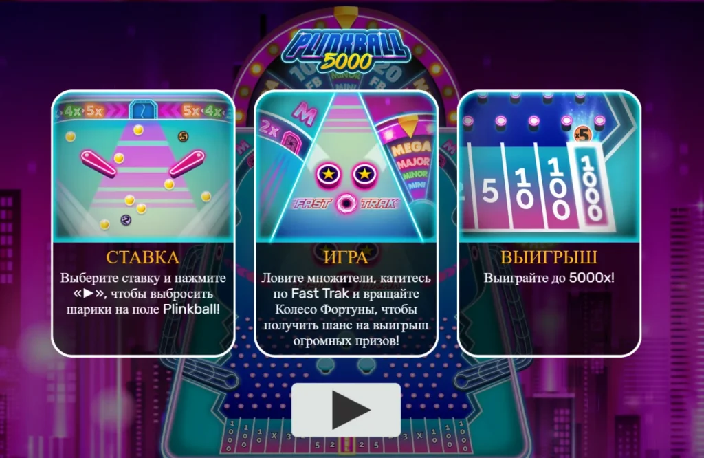 Plinkball 5000 — это не просто слот, а настоящий аркадный аттракцион. Игроки запускают шары, которые, сталкиваясь с различными препятствиями, могут попасть в ячейки с множителями, активировать бонусные колеса или получить дополнительные шары. Игра предлагает RTP 97% и среднюю волатильность, что делает её привлекательной как для новичков, так и для опытных игроков.